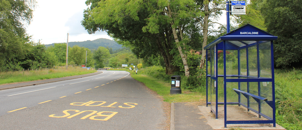 01 Barcaldine bus stop, Ruth hiking in Scotland