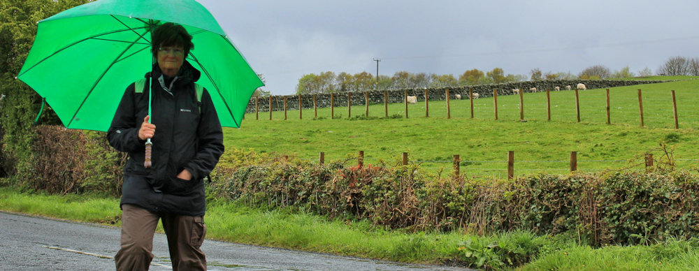 01 Ruth and her green umbrella, hiking in Scotland