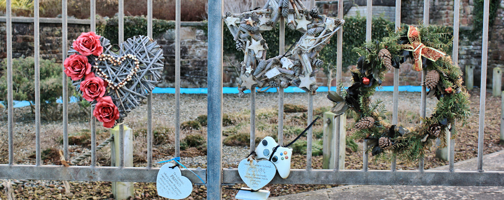 04-memorials-on-railings-ruth-livingstone-walking-the-english-coast-maryport-cumbria