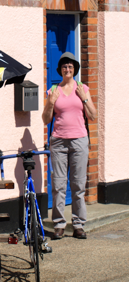 The pub is a welcome sight, just off the main road and near to the war memorial. It is very stuffy – and a little old-fashioned – within. The publican is sweaty and finding the heat trying. I order a cider, taking it outside to drink in the breeze. My husband, on his brand new racing bike, joins me. The food is very good – although our meals arrive at different times as my order is somehow lost.