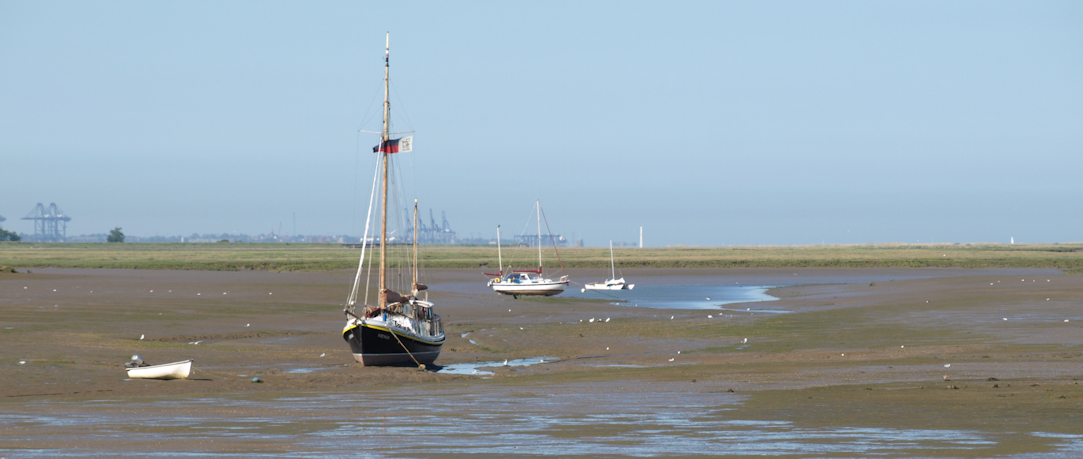 I walk along the busy road from Kirby-le-Soken to Walton-on-the-Naze. This is the hottest day of the year so far. Temperatures are going to soar into the 80s (that is the high 20s if your mind works in Centigrade). Luckily there is a pavement along this stretch of road. The marshes are to my left, behind a high hedge. Through gaps in the hedge I can see the distant sea and, beyond that, the cranes of Felixstowe. It seems a long time since I left Felixstowe – yet still so near.