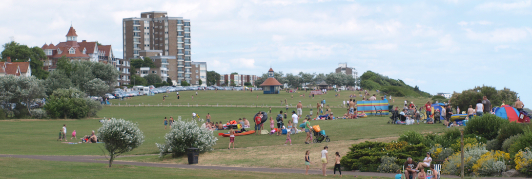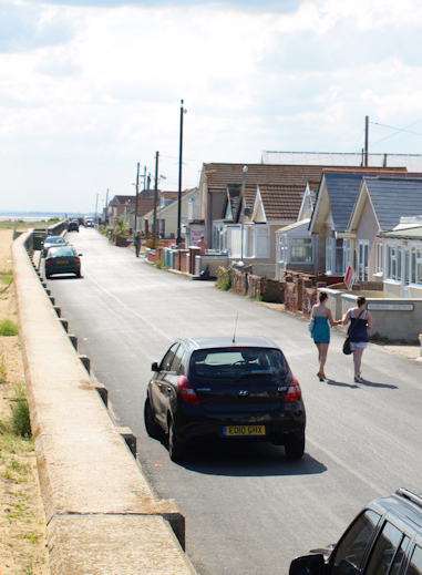 When I reach Holland-on-Sea, the promenade becomes crowded again, with beach huts and people. I am tired and want to find a pub for lunch, having pre-arranged to meet my husband here. So, I leave the beach and climb upwards to a wide promenade that runs above the beach. There are houses to my right, but no sign of a pub. The promenade is also a cycle way. I wonder if I will meet my husband cycling along?