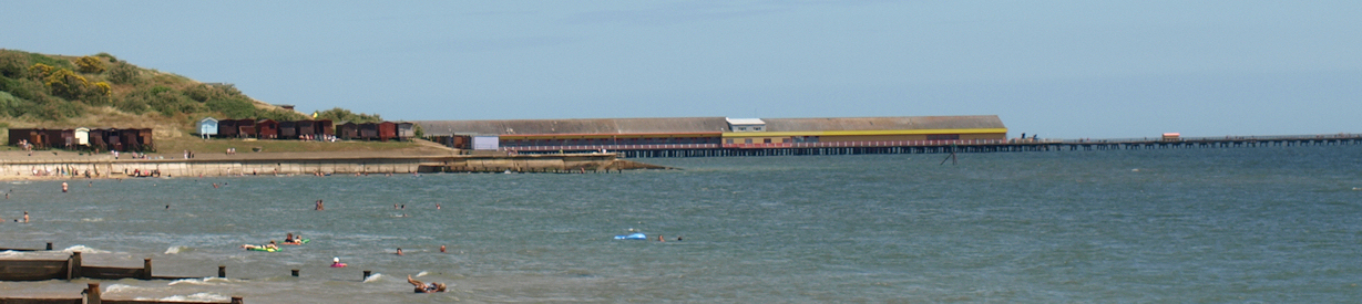 Leaving Frinton and heading on to Clacton, I walk along the high sea wall. On the edge of Frinton are some amazing beach huts – accessed from the sea wall via small front decks, they are built on stilts and jut out over the beach with waves sloshing underneath. The windows at the ‘back’ of these huts look directly over the sea. Wonderful.
