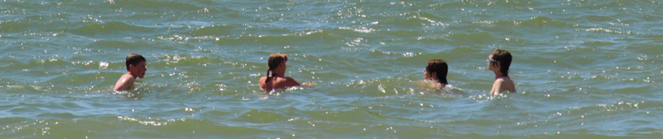 Further on I see people swimming in the sea. The sky is cloudless and the sea is a beautiful, bright blue – a tropical hue rarely seen in this country.