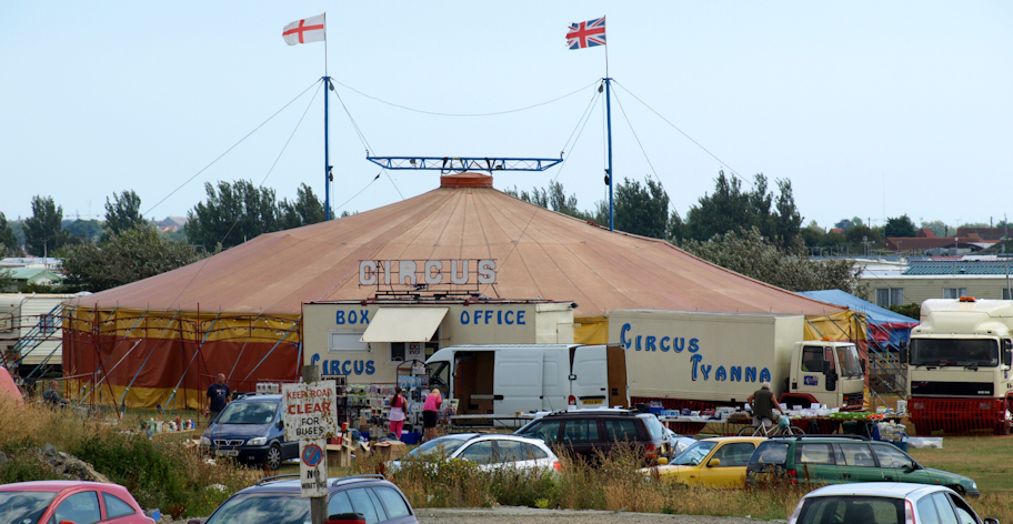 St Osyth Beach, Jaywick, looks better in the morning light. The karaoke pub is not functioning at this hour and there are young families and older couples enjoying the early morning seaside air. There is a circus here today – with tents laid out in a nearby field.