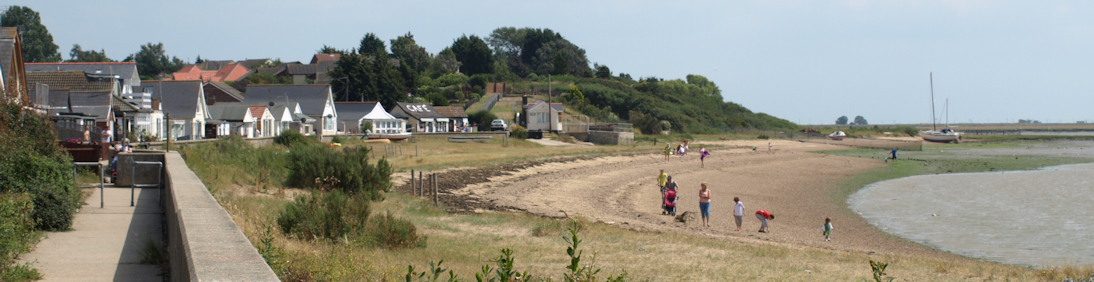 I walk along a concrete sea wall, past the religious youth camp, then past a caravan site and finally reach the outskirts of West Mersea.