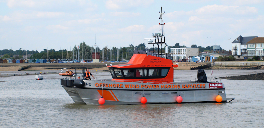 A large boat appears. It has come from the offshore wind farm and carries workmen wearing safety helmets. They yell at a yacht moored on a wooden pier – “Hey, that is our berth.” The young men on the yacht ask how to secure a berth and one of them takes out a mobile phone as the workmen dictates a number. They cast off and move away, allowing the tug to dock.