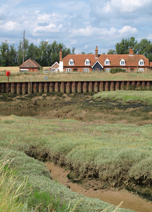 Now I am back to the beginning of my walk. I am in front of the rather nice house, which I believe is the new Old Hall Farm house. There is a quay here and some small boats moored. But the tide is out and the boats are sitting in mud, not water.