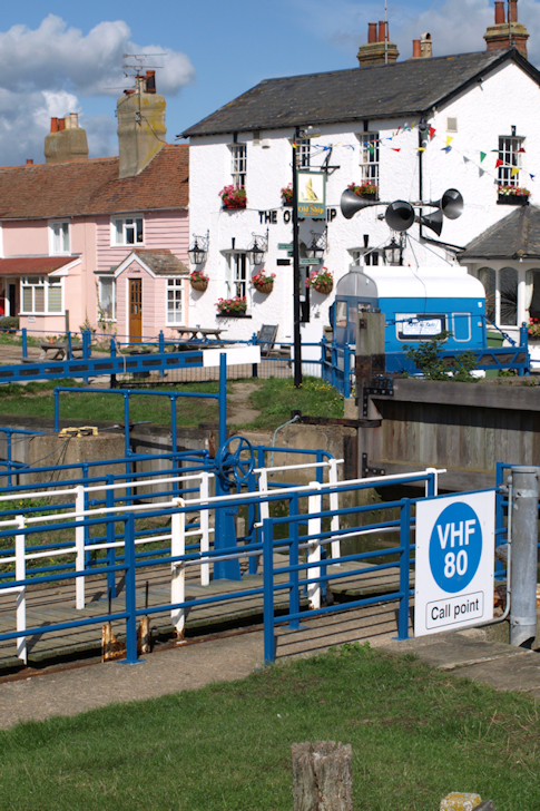 Heybridge Basin is quieter today. Last time I was here, the pubs were open and the walkway was crowded. Now there is a fundraising event, with stalls being set up on the grass on either side of the lock.
