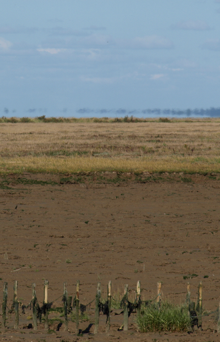Looking back the way I have travelled, I am amazed to find that I can still see St Peter’s Chapel. And beyond I can just make out the Blackwater River. But wait; there is something very odd here. The river level seems unusually high, higher than the sea level beyond it. And appears to be flooding the far bank. I can see bushes, or trees, with their roots apparently hidden by the water.
