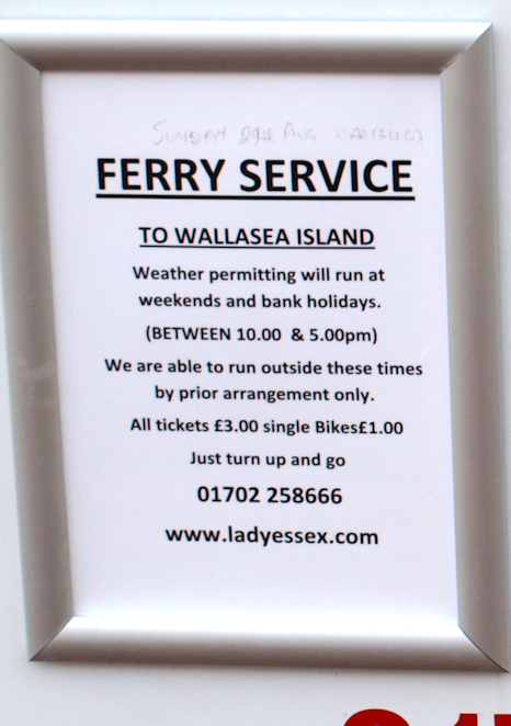 There is a summer ferry service from Burnham-on-Crouch to Wallasea Island. I sit on a bench outside a pub, waiting. There were revellers here last night, but all is quiet now. It is just after nine in the morning; an early start because we stayed overnight in a hotel in this town. It is of little benefit to be here early – I have already telephoned to check the passage times and was told the captain hadn’t arrived yet. The ferry doesn’t start running until ten o’clock.