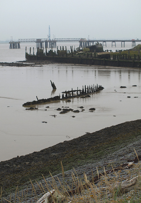 Realising I am now running late, I leave the fort and walk as rapidly as I can along the river wall, heading for Cliffe Fort. A wide road leads up to the wall and I pass some old plank structures on the river side. Apparently, there was an embarkation area here, built in the preparations for D Day, but never really used.