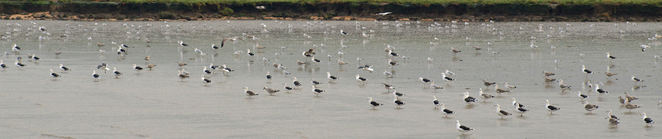 Here is a perfect little horseshoe bay. Across gleaming mud, long slow waves are flowing gently inland, with graceful white crests. Standing in the mud, facing the incoming tide, is a mass of sea gulls; standing still and quiet. This is Egypt bay, as marked on the map, and it is beautiful.
