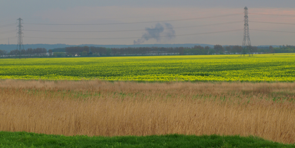 The smell of the rape flowers irritates my nose and throat. I stop and take a hay fever tablet, swallowing it with a gulp of water from one of my bottles.