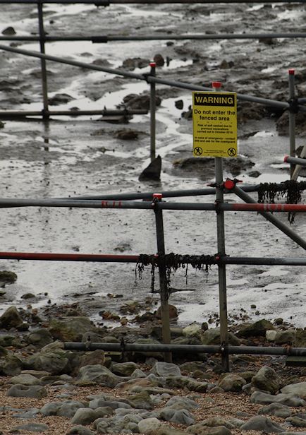 warning in the mud, Ruth's coastal walk, Kent I see a patch of fenced-off mud with warning signs around it. Is this ‘sinking mud’ – ready to suck some unsuspecting walker into its clammy embrace?