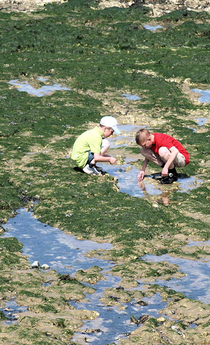 With the good weather, and the holiday, I expect to see people around today. This sea front is broad and long, and with no sand to attract the family crowds, it remains relatively empty; yes, there are walkers, some cyclists, a few fishermen, a couple of children hunting in rock pools and some brave swimmers.