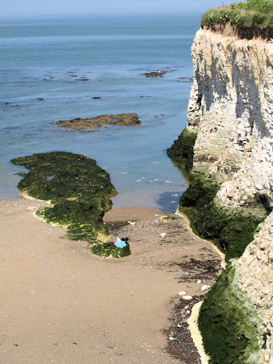Then I arrive at Joss Bay. At first I only see the car park, then, looking down, I realise this is a perfect bay – a beautiful punched-out curve of sandy beach, blue water and stunning white cliffs.