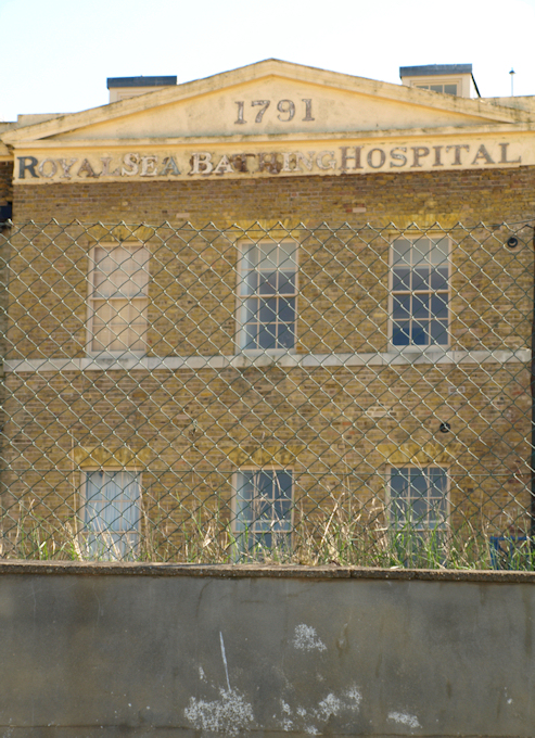 As I walk towards the main part of the town, I pass a fenced off area with a derelict looking building, in the process of being redeveloped. I am intrigued by the faded sign on the facade. At first I think it says the ‘Royal Sea Bath Hospital’. Then I realise, it says ‘The Royal Sea Bathing Hospital’.