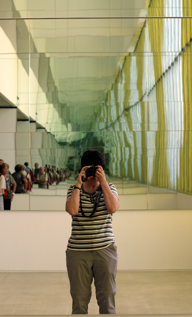 I realise this is one of the exhibits – by Daniel Buren, Borrowing and multiplying the landscape. This is fabulous.