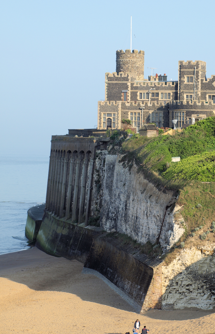 I catch glimpses of a large house – looks like a castle – towering above the cliff. As I approach, I realise my route along the sea (both above and below the cliff) is barred by the private grounds of this castle. Built in the 1760s, Kingsgate Castle has been converted into private residences.