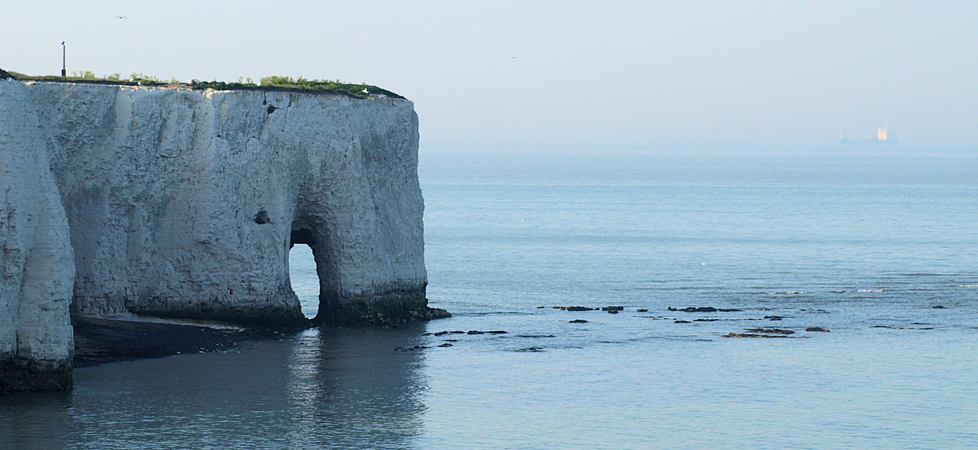 Finally, I reach an amazingly beautiful outcrop of rock, called (I think) White Ness. Beyond the chalky cliff face, blue sea stretches out to a hazy horizon and, like weird ghosts, the faint outlines of large ships can be seen, floating in the Channel.