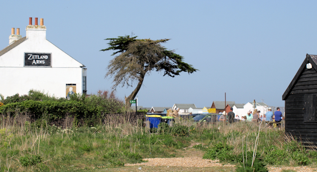 The road widens into a car park area. Cars are parked haphazardly with no apparent restrictions. Families are sitting outside on benches. There is a small pub, the Zetland Arms, where I stop for a drink. It is very hot. I can’t believe it is Easter Sunday.
