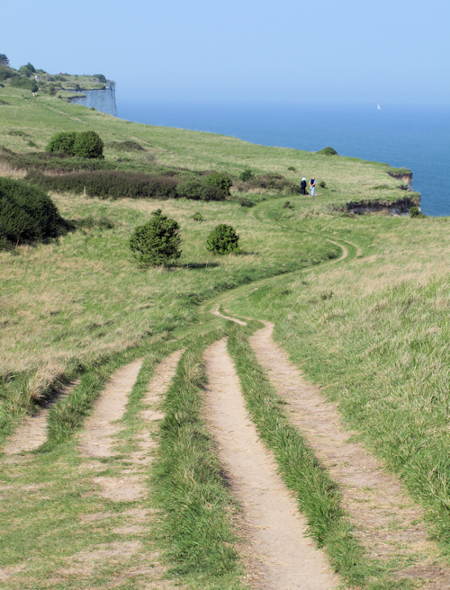 I climb upwards, along a path running through green spaces at the top of the cliffs. Below me is blue sea, stretching to a hazy blue horizon. Behind me is a fantastic view of Oldstairs Bay. Ahead the path loops along the top of white cliffs, towards St Margaret’s and Dover beyond.