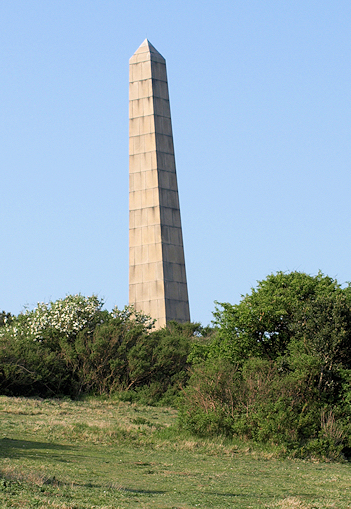 On the crest of the rise, ahead of me, I see a white building and a tower. As I draw nearer, I realise the building is an old coastguard station and the tower is a monument.