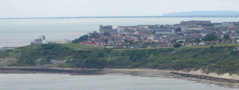 This is the highest section of my walk today. I can see the path ahead, stretching out across the cliff top. And beyond I can see Folkestone, below.