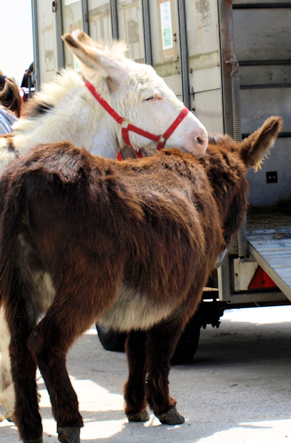 I notice a trailer parked on a slipway, with donkeys patiently waiting alongside the vehicle. The tide is still high, too high for the trailer to get down to the beach. They have to wait for the tide to go out. Later, I suppose, there will be donkey rides along the sand.