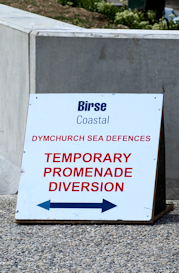 After a while, I walk on the landward edge. At least here there is something to look at. If I walk close to the wall, I can see over it. There are occasional steps up from the road beneath, and I notice the steps either start above the wall, or have flood gates in front of them. This promenade is part of newly competed sea defences. Further along, I discover some parts are still under construction.