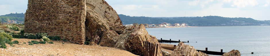 There is a third Martello tower on this section of coast, but the foundations have been undermined and the tower has toppled over.