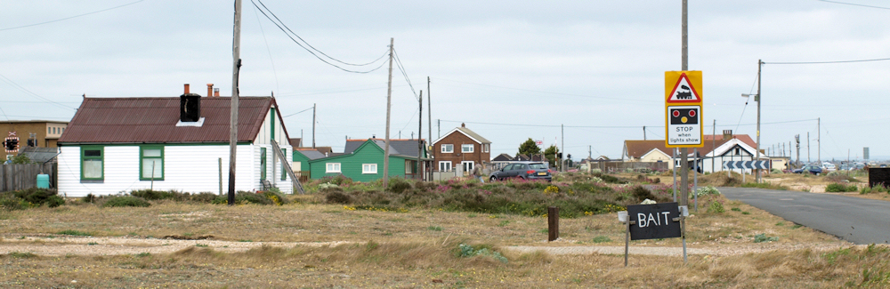 Along the shingle, close to the sea, are fishing boats, shacks, and an odd collection of rusting machinery and old railway tracks, leading out to sheds. A working place.
