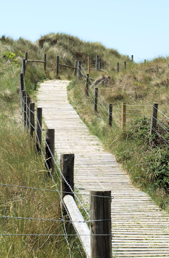 Dunes, West Beach, Littlehampton, Sussex. Ruth's coast walk.I follow the fenced footpath up through the dunes. The going is easy because the path consists of slats of wood.