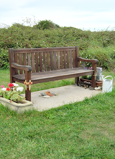 Coming back to the shoreline, I find an area where there are two wooden seats with flowers and other memorial items. But, instead of bearing the names of elderly people, these benches are in memory of two young soldiers – Steven Jones killed in an air crash in Baghdad and Sean Reeve, killed in Afghanistan.