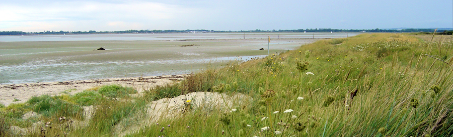 Longmere Point is deserted. I don’t know how many people make the complete walk around Thorney Island, but on this dull Saturday I don’t meet any walkers as far along the path as this. There is an area of sandy dunes at the point and great views across Chichester Harbour to the open sea beyond the harbour mouth.