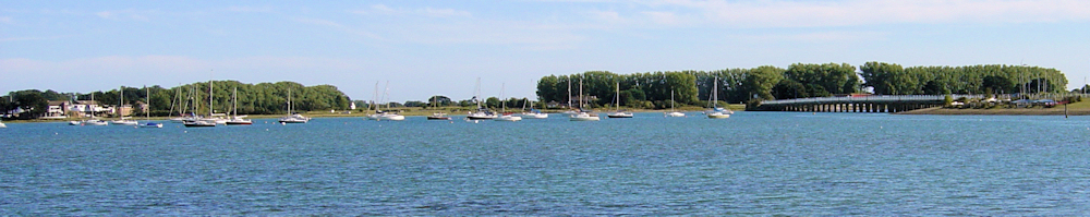A wide promenade leads from the shore. This is the Town Mill Pond Promenade (yes, Emsworth has two mill ponds) and it loops out into the water to form a large semicircle, joining the shore again further along.