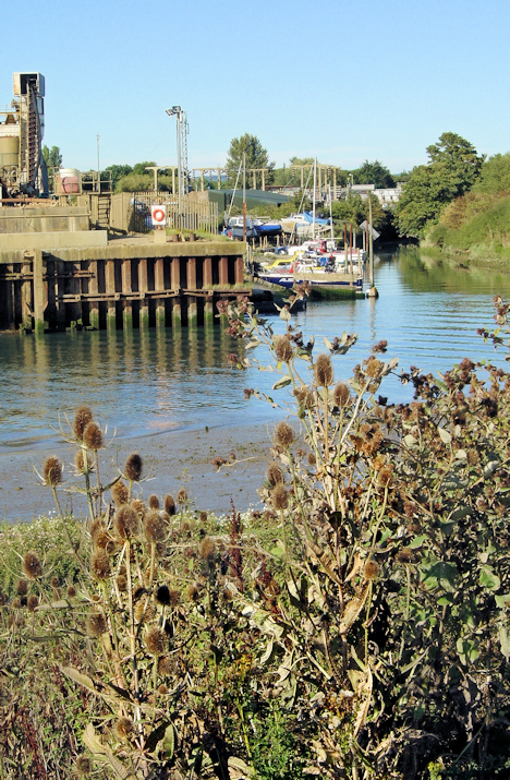 The path runs alongside an electricity substation. I meet a couple picking blackberries. With the stench of the sewage works nearby, I am not sure I would want to pick blackberries here and I remember the wonderfully tasty berries I picked on Thorney Island.