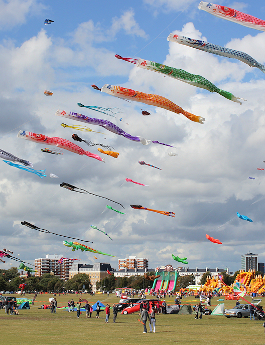 Southsea Common is awash with bright, floating kites and balloons. There is a fun fair and entertainments. Later, I find out that Portsmouth is hosting an International Kite Flying Festival this weekend.
