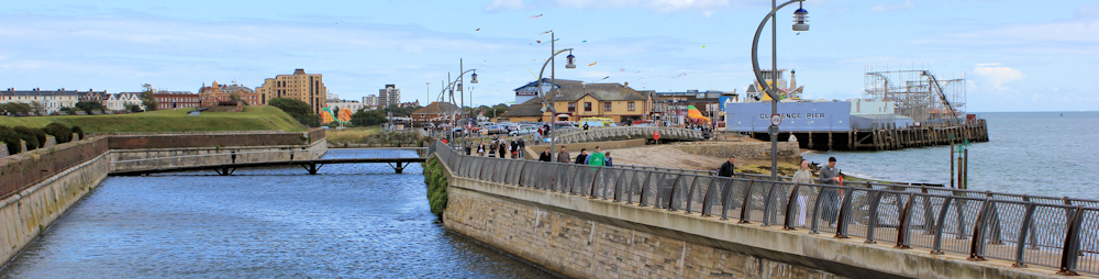 Beyond Clarence Pier, the walk passes through the old part of Portsmouth – past the Square Tower and through the Round Tower.