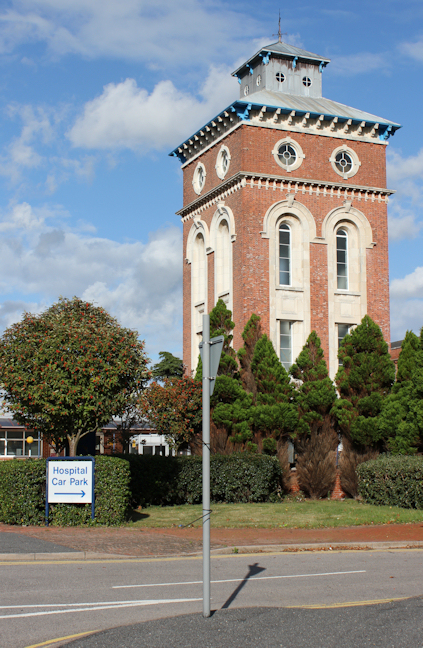 The road runs past a military area with high walls on either side and checkpoints on the side roads. I cannot get to the coast. The only thing of interest I see is a hospital sign alongside an impressive rectangular tower. (I believe this is part of The Royal Hospital Haslar, a naval hospital, now undergoing redevelopment.)