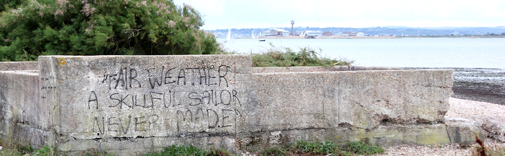 Somebody has written this warning graffiti on a piece of concrete wall, probably part of an old military fortification: ‘Fair weather a skilful sailor never made’. I suppose this is true.