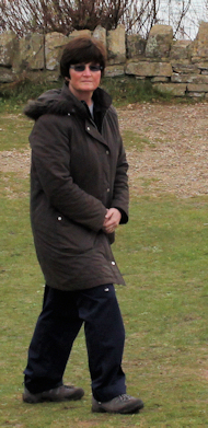 Ruth, on her coastal walk, around Durlston Head.I use the stone steps to perch my camera on and set the timer to take a self-portrait.