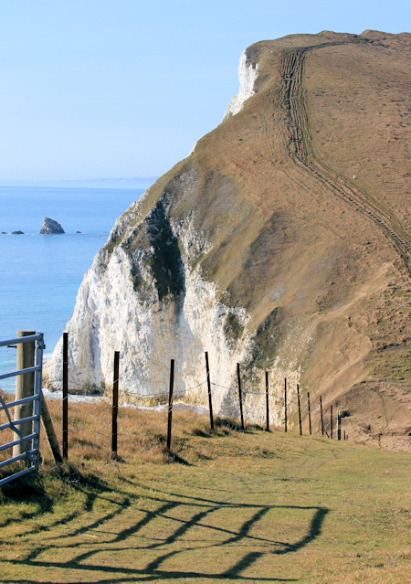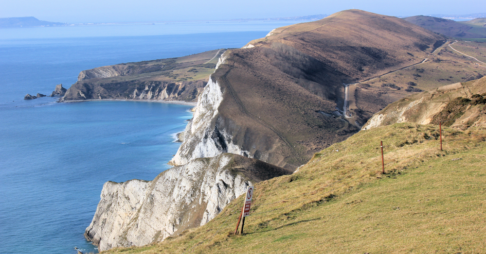 From the top, I get a view clear across the sea to Mupe Rocks, to Weymouth and to the brooding bulk of Portland beyond.