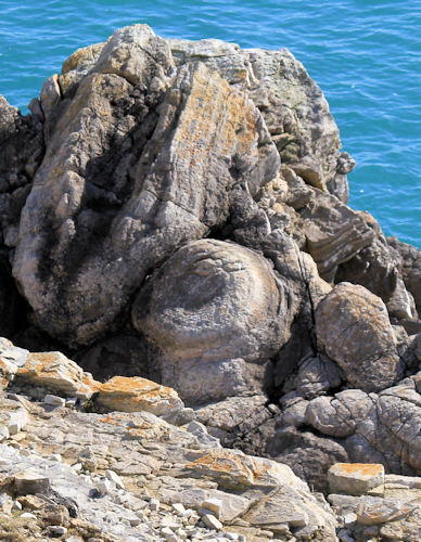 The ‘fossils’ in the photos are the outer casings left by the solidified sediment. You can read a detailed description of this amazing geological phenomena on Dr Ian West’s site.