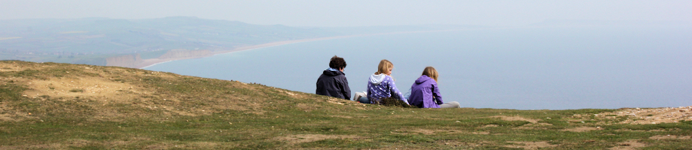 14 top of Golden Cap, Dorset, Ruth walking round the coast.