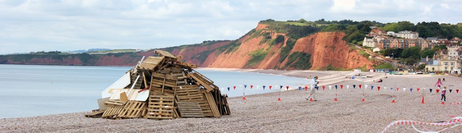 06 Beach at Budleigh Salterton, Ruth on her coastal walk, Jubilee weekend