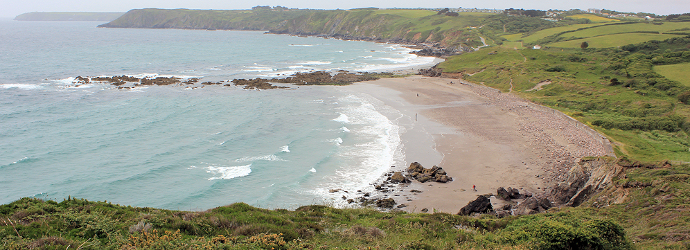 12 Kennack Sands, Cornwall, from the South West Coast Path, Ruth on her coast walk