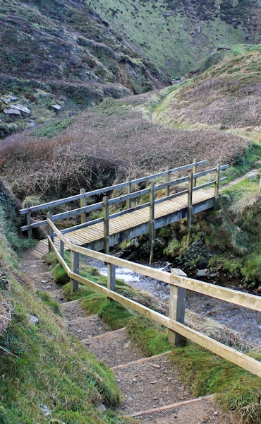 10b bridge at Marsland Mouth, Ruth on her coast walk