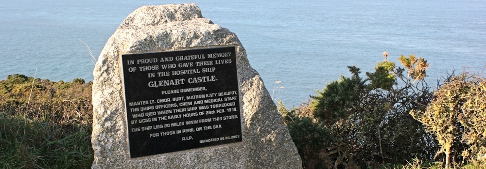 Further along, we see a memorial stone for the hospital ship, the Glenart Castle, sunk by a U-boat during the 1st World War. [This was a horrible war crime and more information about the sinking can be found here.]